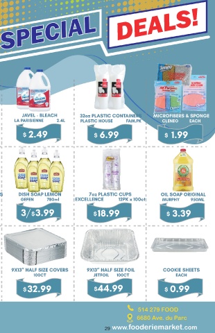PIZZA 18” PREMIUM COCOA PAPER TOWEL SHEETS JAVEL - BLEACH 32oz PLASTIC CONTAINERS MICROFIBERS & SPONGE