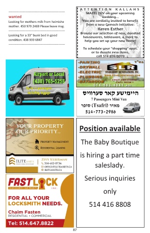 mother. 450 979 2469 Please leave msg. from a new Gemach initiative: