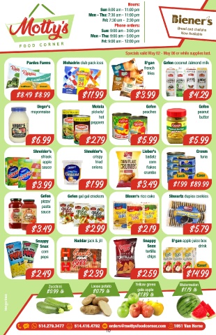 514.279.3477 514.416.4792 orders@mottysfoodcorner.com 1051 Van Horne