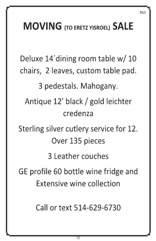 MOVING (TO ERETZ YISROEL) SALE