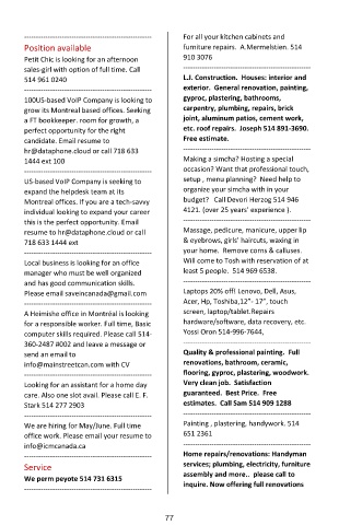 grow its Montreal based offices. Seeking carpentry, plumbing, repairs, brick