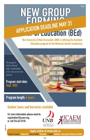 Choose: Campus Fredericton, Area of Study: Education, Program Bachelor of Education (Montreal JCAEM).