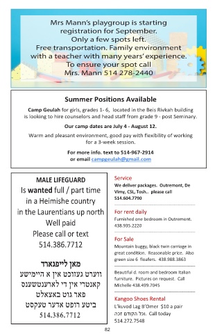 is looking to hire counselors and head staff from grade 9 - post Seminary.
