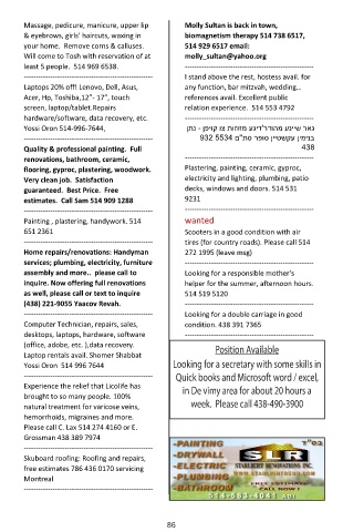 Yossi Oron 514 996 7644 Looking for a secretary with some skills in
