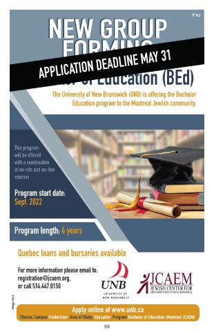 Choose: Campus Fredericton, Area of Study: Education, Program Bachelor of Education (Montreal JCAEM).