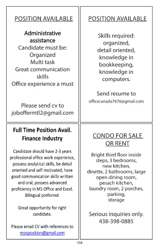 proficiency in MS Office and Excel. laundry room, 2 porches,