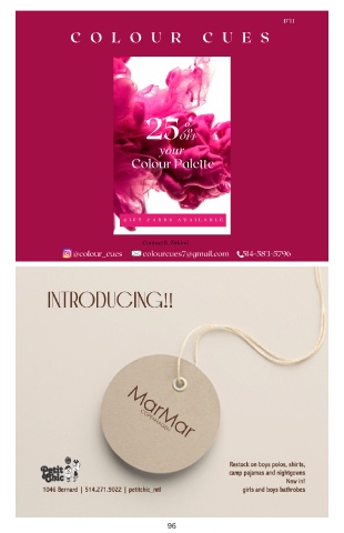B''H C O L O U R C U E S 25 OFF % your Colour Palette G I F T C A R D S A V A I L A B L E Contact R. Zirkind @colour_cues colourcues7@gmail.com 514-583-5796 96