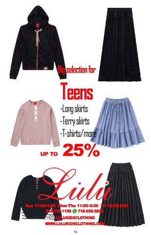 Big selection for Teens -Long skirts -Terry skirts -T-shirts/more UP TO 25% 16