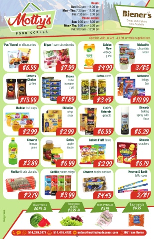514.279.3477 514.416.4792 orders@mottysfoodcorner.com 1051 Van Horne