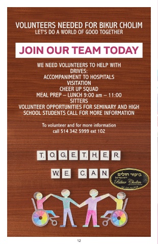 VOLUNTEERS NEEDED FOR BIKUR CHOLIM t tu ur rn n