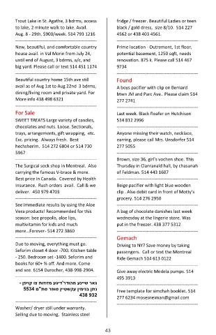 hechsherim. 514 272 6804 or 514 730 277 5055