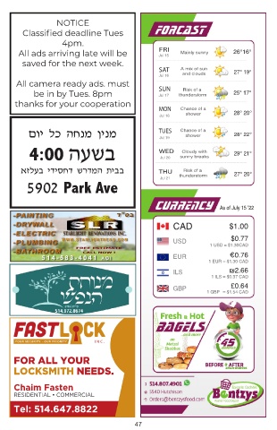 All ads arriving late will be FRI Mainly sunny 26°16°