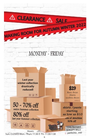 Sun. CLOSED Mon.- Thurs 11:30-5 Fri. 11:30-1:30 petitchic_mtl