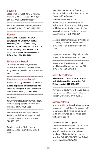 Viateur). call 438 499 7659 house avail. in Val Morin for second half