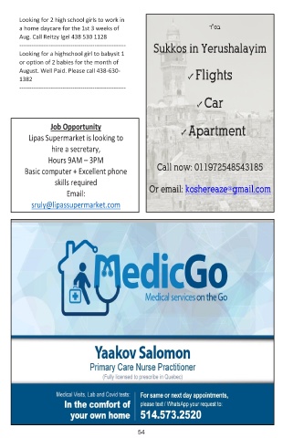Shomer Mitzvot 514-341-1803 Job Opportunity
