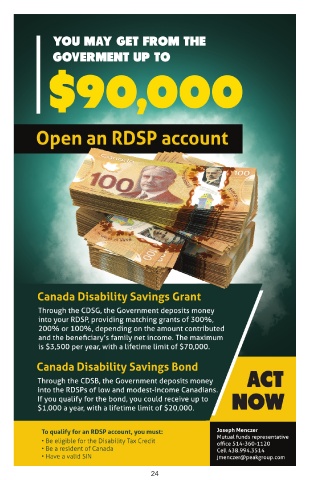 • Be eligible for the Disability Tax Credit office 514-360-1120