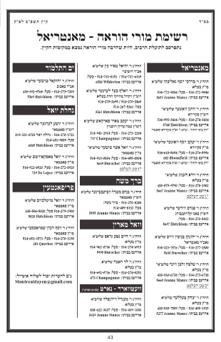 438-392-9768 :לעס - :ותיבב סערדא א"טילש אזלעב תדה יקי זחמ להק 'ר ג"הרה 5651 Jeanne Mance - ס :ותיבב סערדא
