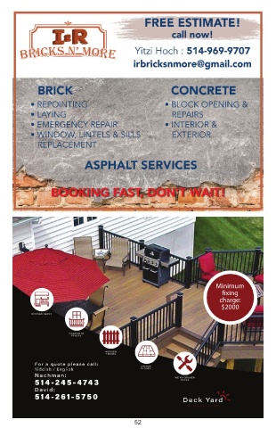 Minimum xing charge: $2000 Yiddish English RE N O VA TI ON S 52