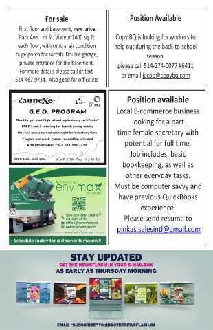 Park Ave. nr St. Viateur 1400 sq. ft Copy BQ is looking for workers to