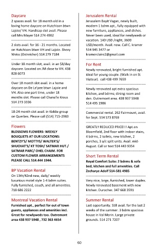 months slot. Please call Chana'le Kraus den. Outremont area. 438 937 5948
