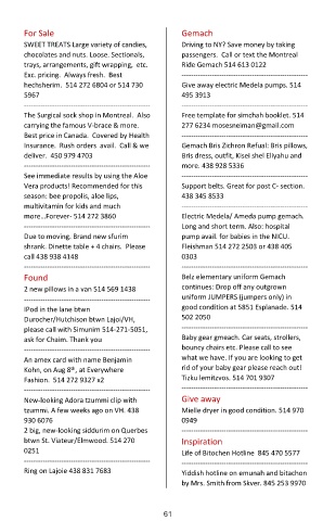 trays, arrangements, gift wrapping, etc. Ride Gemach 514 613 0122