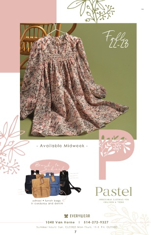 ד״סב Fall 22-23 - Available Midweek - Back to School school + lunch bags in corduroy and denim 1040 Van Horne I 514-272-9327 Summer hours: Sun. CLOSED Mon-Thurs. 11-5 Fri. CLOSED 7