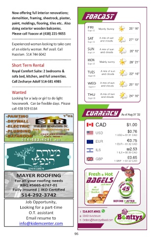 Call Zecharye Adolf 514-581 4985 WED A mix of sun