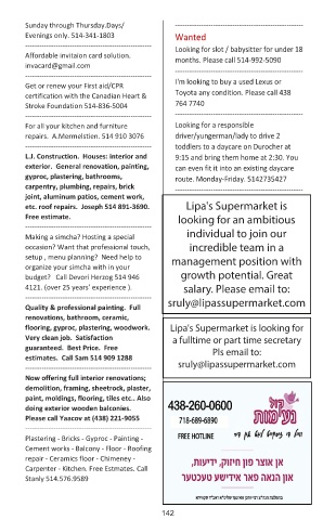 available. Please contact the Rabbinical available. Please contact the Rabbinical Lipa's Supermarket is