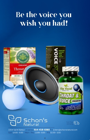 Be the voice you wish you had! Fast free delivery 1004 Saint Viateur II Call/Text: 514-418-6360 II orders@schonsnatural.com Sun: 12:00- 6:00 Mon- Thu: 11:00- 6:00 Fri: 11:00- 1:00 4