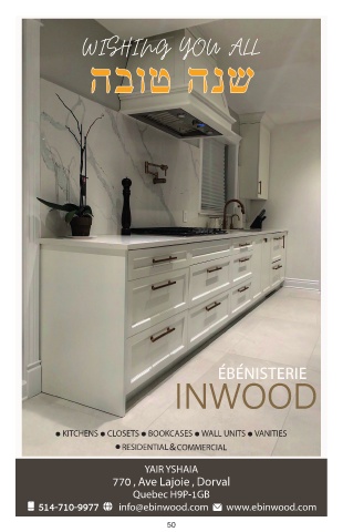 WISHING YOU ALL הבוט הנש EBENISTERIE KITCHENS CLOSETS BOOKCASES WALL UNITS VANITIES RESIDENTIAL&COMMERCIAL YAIR YSHAIA , , 770 Ave Lajoie Dorval Quebec H P-1GB 514-710-9977 infoebinwood.com www.ebinwood.com 50