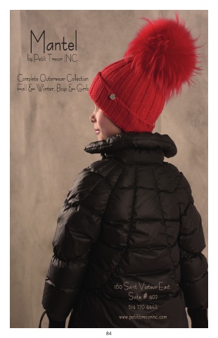 Mantel by Petit Tresor INC. Complete Outerwear Collection Fall & Winter, Boys & Girls 160 Saint Viateur East Suite # 402 514 270 4444 www.petittresorinc.com 84