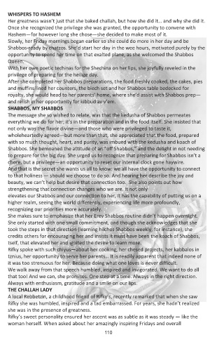 elevates our Shabbos and our connection to her, it has the capability of putting us on a