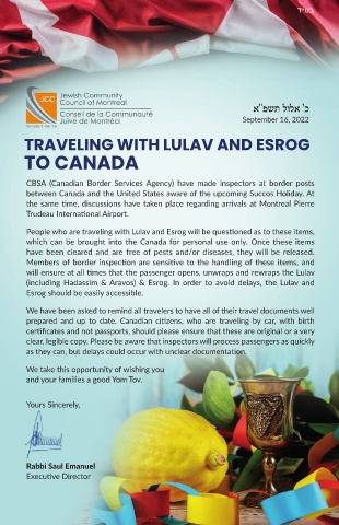 between Canada and the United States aware of the upcoming Succos Holiday. At