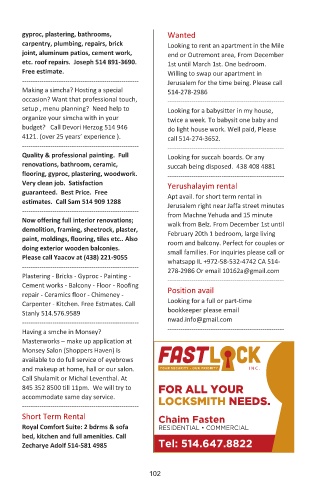 etc. roof repairs. Joseph 514 891-3690. 1st until March 1st. One bedroom.