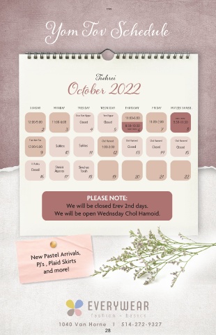 12:00-5:00 Sukkos Sukkos 1:00-3:00 Closed Closed Closed