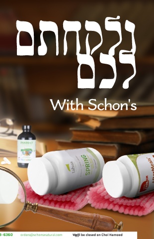 םתחקלו םכל With Schon's Stock up for a pleasant Yom Tov 1004 Saint Viateur Call/Text: 514-418-6360 orders@schonsnatural.com We'll be closed on Chol Hamoed 65