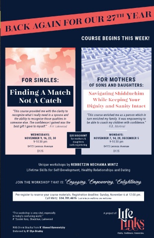 ,טייקסיז א טימ ﬥקיטש Unique workshops by REBBETZIN NECHAMA MINTZ