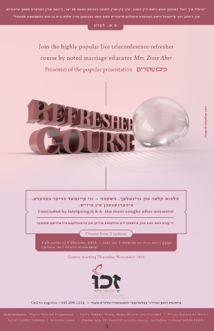 course by noted marriage educator Mrs. Zissy Aber