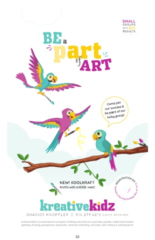 Kreative Kidz is an extensive art program offering instructions in; portraits, pastels, traditional/modern
