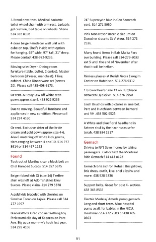 Simchas Torah on Lajoie. Please call 514 Electric Medela/ Ameda pump gemach.