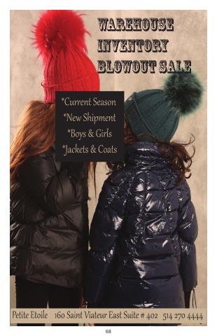 Warehouse Inventory Blowout Sale *Cur�ent Season *New Shipment *Boys & Girls *Jackets & Coats Petite Etoile 160 Saint Viateur East Suite # 402 514 270 4444 68