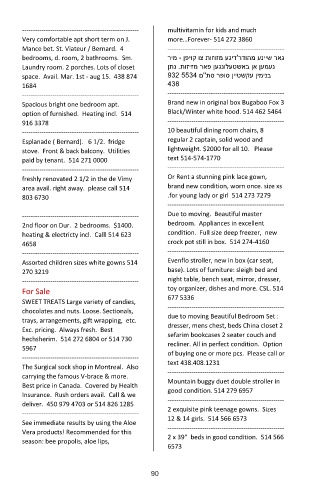 space. Avail. Mar. 1st - aug 15. 438 874 932 5534 ם''תס רפוס ןייטשקע ןימינב