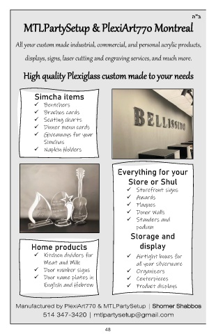 Manufactured by PlexiArt770 & MTLPartySetup | SShomer Shabbos