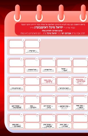 בקעי לאומש ה"ומ השמ ה"ומ םייח לארשי ה"ומ ו"יה גאצרעה ןרהא ה"ומ ריאמ 'יבוט ה"ומ ףסוי ה"ומ דסחה םוי רעייא ןעמיטשאב וצ רעדא