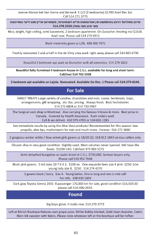 Avail now. Please call 514 274 6915