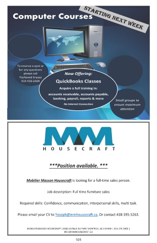 Mobilier Masson Housecraft is looking for a full-time sales person.