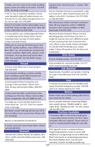 for rent or sale. 514 278 0400 Belz elementary uniform Gemach continues: