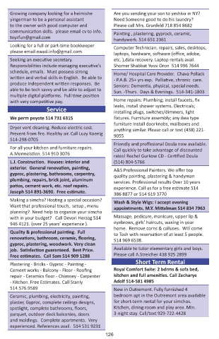 Responsibilities include managing executive’s Shomer Shabbat Yossi Oron 514 996 7644