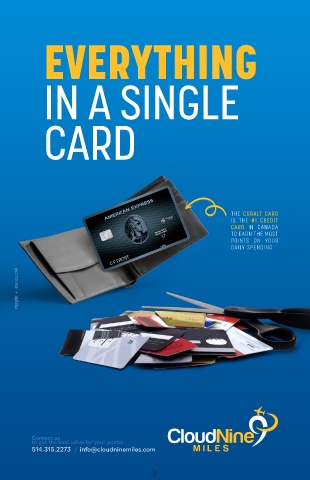 EVERYTHING IN A SINGLE CARD THE COBALT CARD IS THE #1 CREDIT CARD IN CANADA TO EARN THE MOST POINTS ON YOUR DAILY SPENDING Contact us to get the best value for your points 514.315.2273 // info@cloudninemiles.com 2