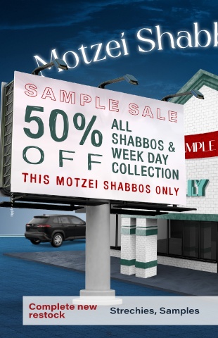 Motzei Shabbos Madness Complete new Open Motzei Shabbos From 7:00PM - 12:00AM restock Strechies, Samples 32